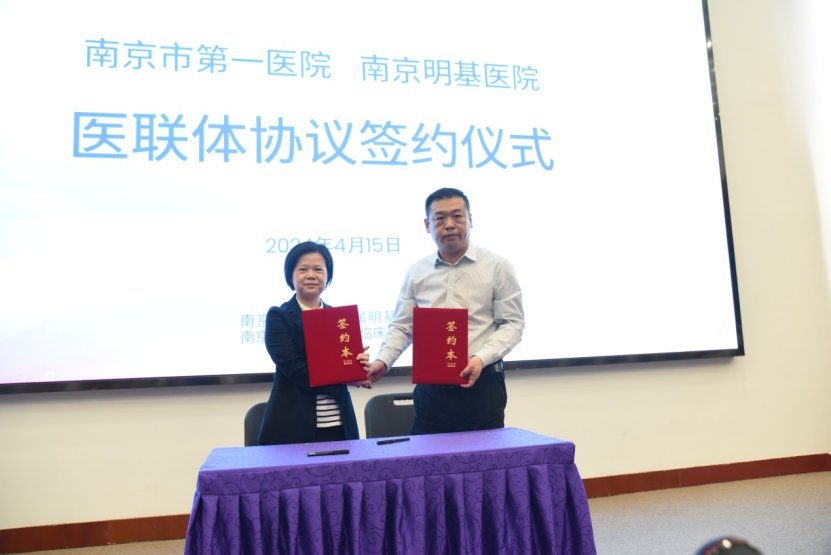4月15日下午,南京医科大学附属明基医院与南京市第一医院共同举办了“江苏省心脏大血管外科联盟理事单位”揭牌仪式、陈鑫教授工作室揭牌仪式。同时,两院就相关合作签订医联体协议。南京市第一医院党委书记王书奎、心胸血管外科主任陈鑫、医务处处长陈尔东、麻醉疼痛与围手术期医学科主任史宏伟、重症医学科主任章淬、心胸血管外科副主任医师秦卫、肖立琼、南京明基医院院长于振坤、党委书记李东、副院长罗翠凌、李新、王汉东、李澄、潘奎静、陈明祥、院长特别助理沈正善、相关临床科室及行政职能部门主管等出席揭牌仪式。会议由李新副院长主持。