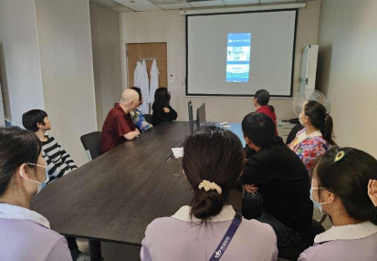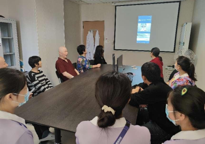 南京明基医院缓和医学科组织患者、家属及医护人员观看南京鼓楼医院通过专家名医直播间开展线上科普讲座,观影结束后,大家进行了讨论,缓和医学科医护人员现场对患者及家属答疑解惑。