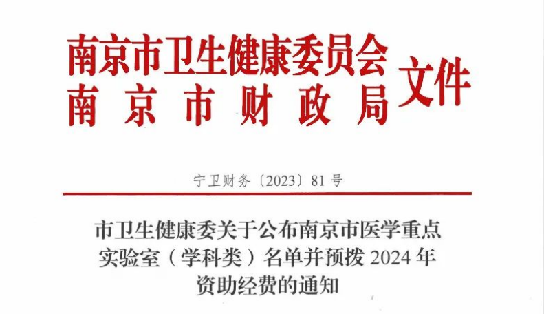 日前,南京市卫生健康委员会、南京市财政局发文,我院获批“南京市咽喉头颈肿瘤医学重点实验室”,这是我院科研工作和耳鼻咽喉头颈外科学科建设取得的重要进展,也是进一步推进科研和学科建设高质量快速发展的重要平台。
