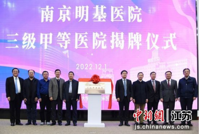 中新网江苏新闻12月2日电 近日,江苏省卫健委公布了2021年三级医院评审结果,南京明基医院正式成为三级甲等综合医院,这也是南京首家非公三甲综合医院。1日晚,南京明基医院三级甲等医院揭牌仪式在南京举行。